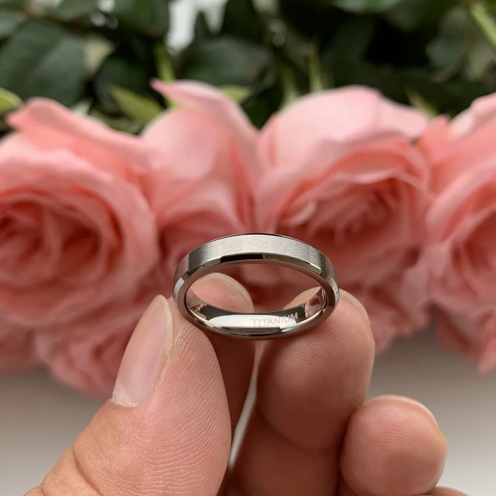 Coolstyle Jewelry Beveled Matte Finish 4mm Wholesale Titanium Ring for Women Men Fashion Engagement Wedding Band